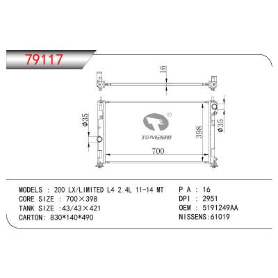 适用于200 LX/LIMITED L4 2.4L 11-14 MT散热器 OEM : 5191249AA