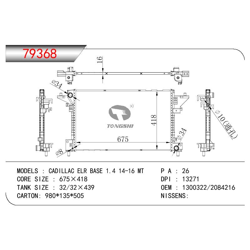 适用于GM DODGE CADILLAC ELR BASE 1.4 OEM:1300322/2084216