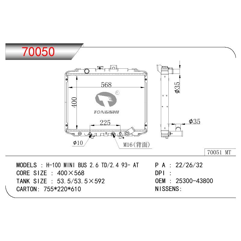 适用于HYUNDAI H-100 MINI BUS 2.6TD/2.4 OEM:25300-43800/25300-43800-20