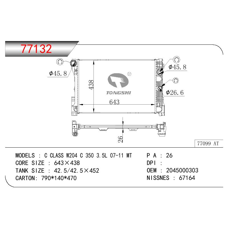 - 适用于奔驰 C CLASS W204 C 350 3.5L 07-11 MT散热器 OEM : 2045000303