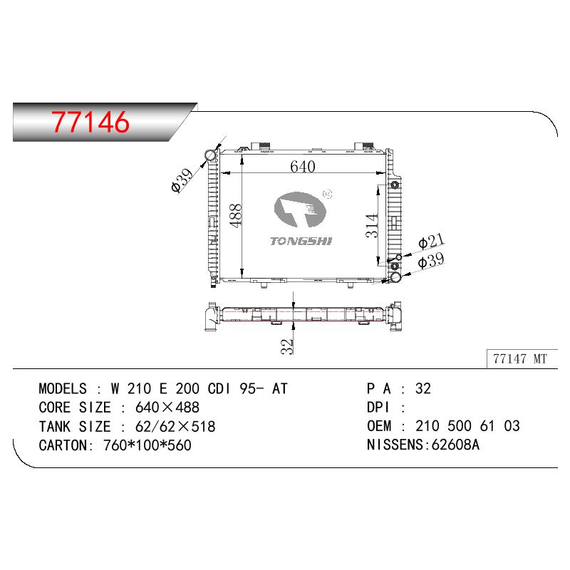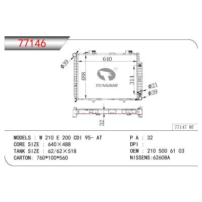 适用于奔驰 W 210 E 200 CDI 95- AT散热器 OEM : 210 500 61 03