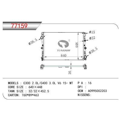 适用于奔驰C300 2.0L/C400 3.0L V6 15- MT散热器 OEM : A0995002203