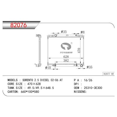 - 适用于起亚索兰托 2.5 DIESEL 02-06 AT散热器 OEM : 25310-3E300