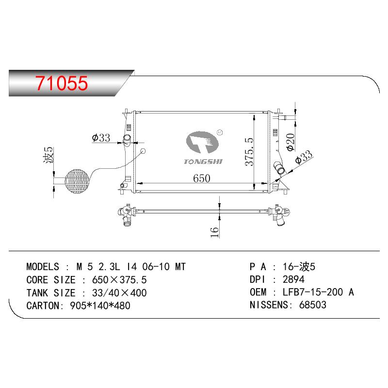 - 适用于马自达M 5 2.3L I4 06-10 MT散热器 OEM:LFB715-200A/RF7N-15200/LFB7-15-200A/LFB715200A/RF7N15200