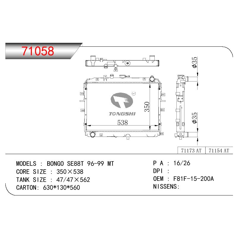 适用于MAZDA BONGO SE88T OEM:F81F-15200A/F81F-15-200A