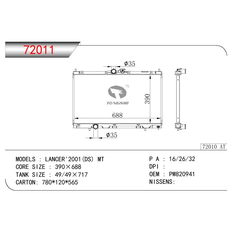 适用于三菱蓝瑟 2001(DS) 散热器 OEM:PW820941