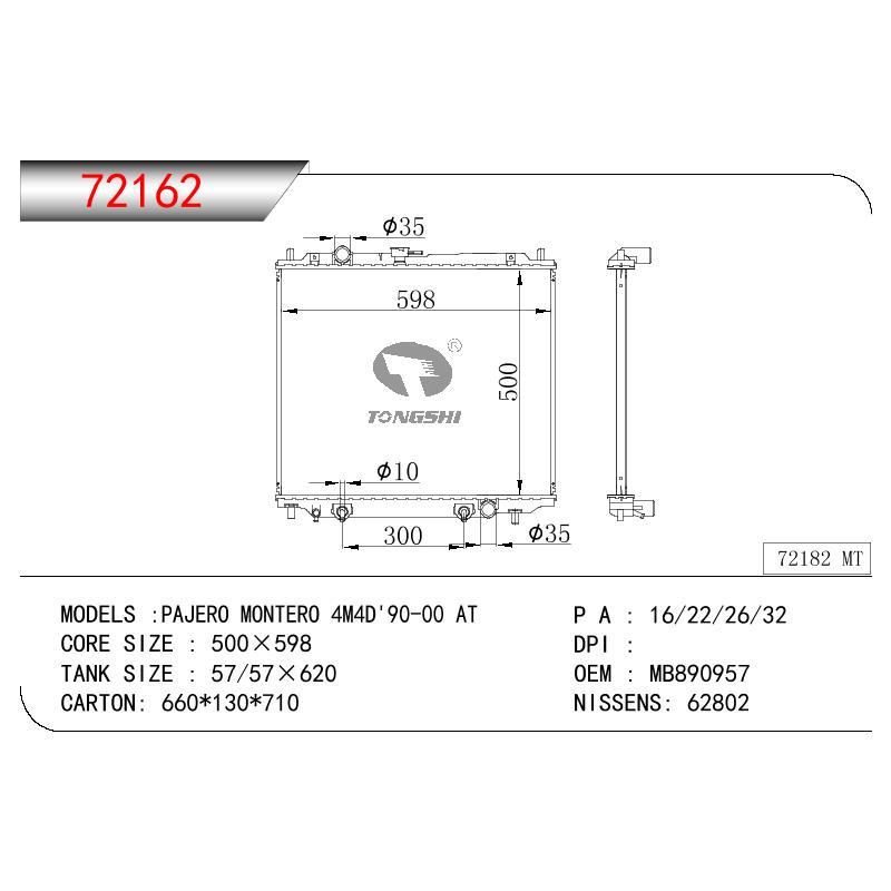 适用于三菱帕杰罗 MONTERO 4M4D 散热器 OEM:MB890957