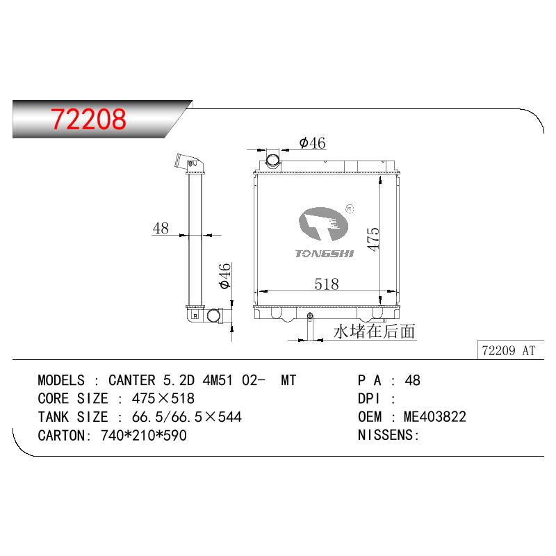 适用于三菱 CANTER 5.2D 4M51 散热器 OEM:ME403822