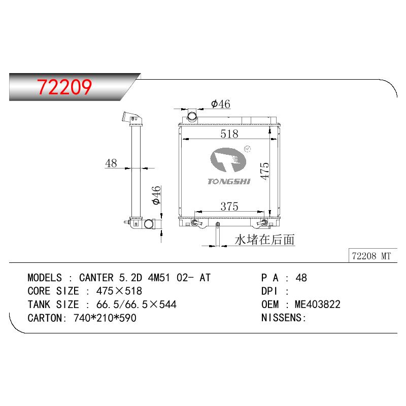 适用于三菱CANTER 5.2D 4M51 02- AT散热器 OEM:ME403822