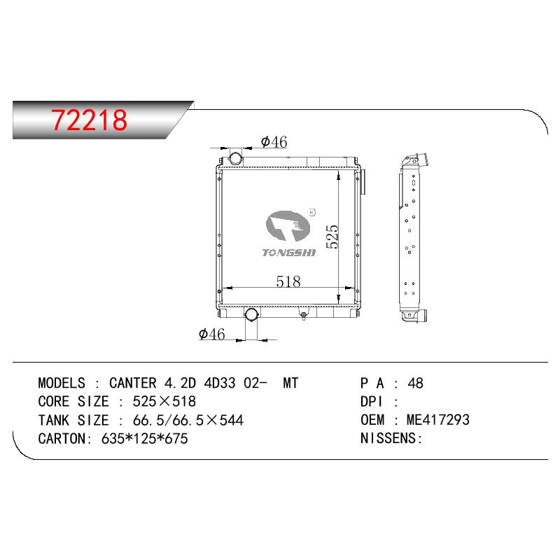 适用于三菱CANTER 4.2D 4D33 02- MT 散热器 OEM :ME4172293