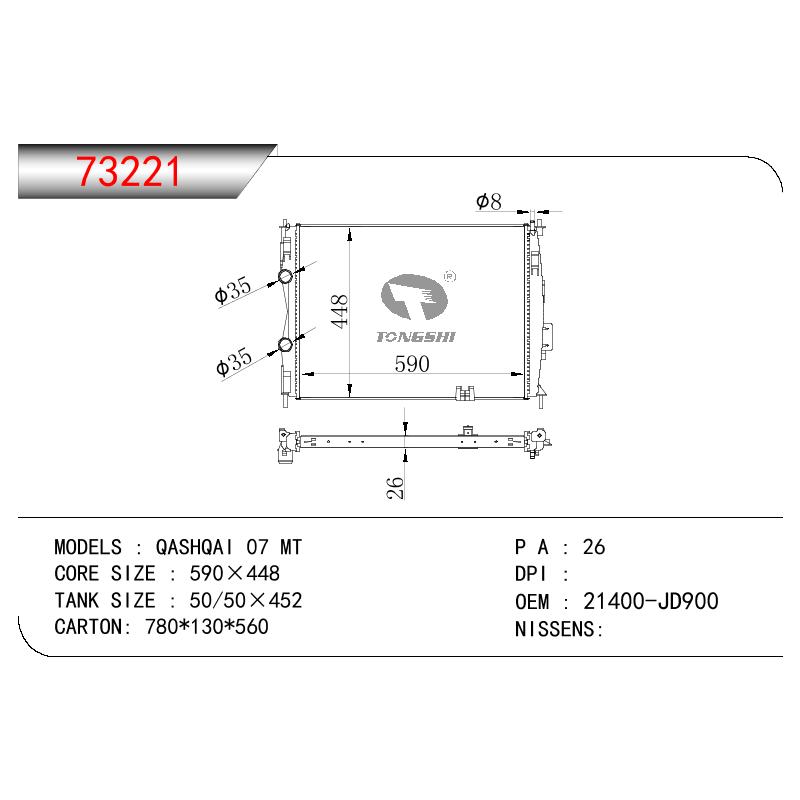 适用于日产尼桑逍客 07 MT 散热器 OEM : 21400-JD900