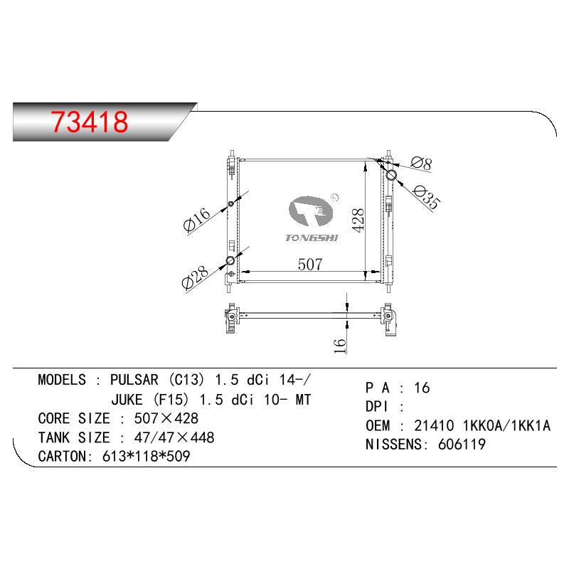 - 适用于NISSAN PULSAR(C13)1.5 DCI 14-/JUKE(F15) 1.5 DCI 10- OEM:21410-1KK0A/21410-1KK1A/214101KK0A/214101KK1A