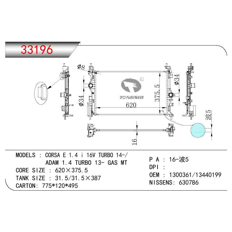 - 适用于OPEL CORSA E 1.4 I 16V TURBO 14-/ADAM 1.4 TURBO 13- GAS MT OEM:1300361/13440199/1300379/13486483