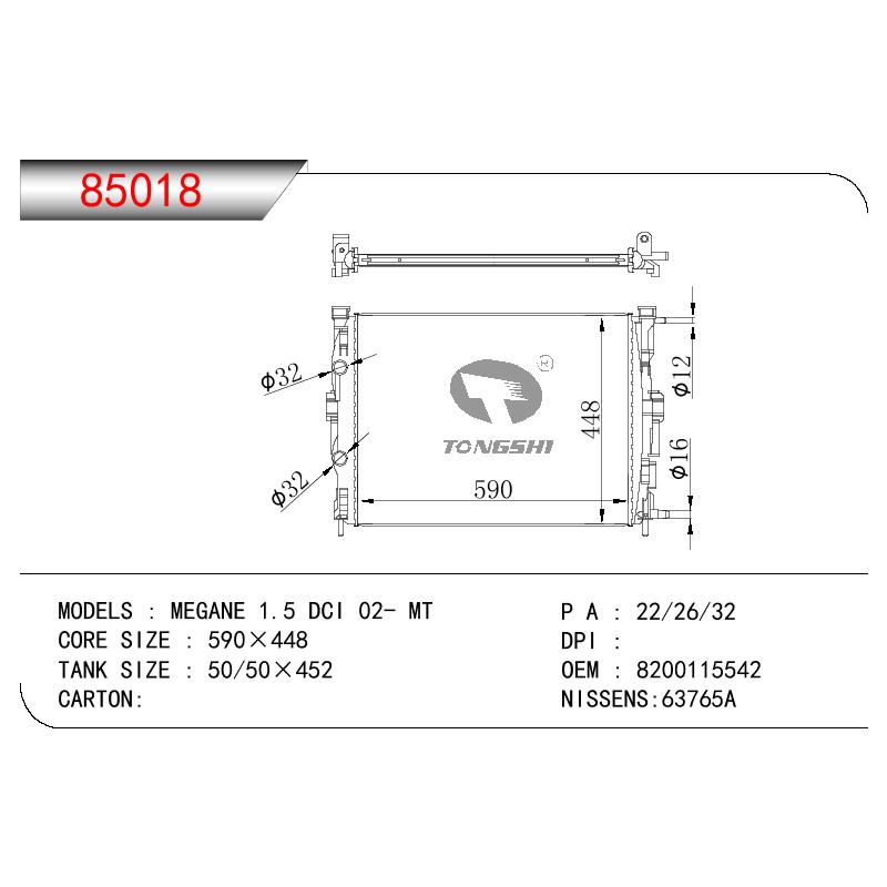 适用于雷诺梅甘娜 1.5 DCI 02- MT散热器 OEM : 8200115542