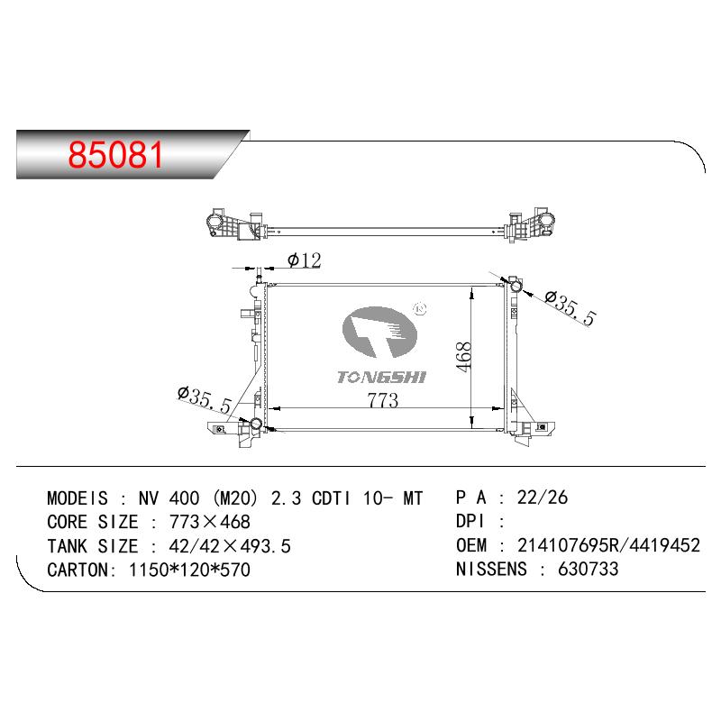 适用于雷诺NV 400 (M20) 2.3 CDTI 10- MT散热器 OEM : 214107695R/4419452