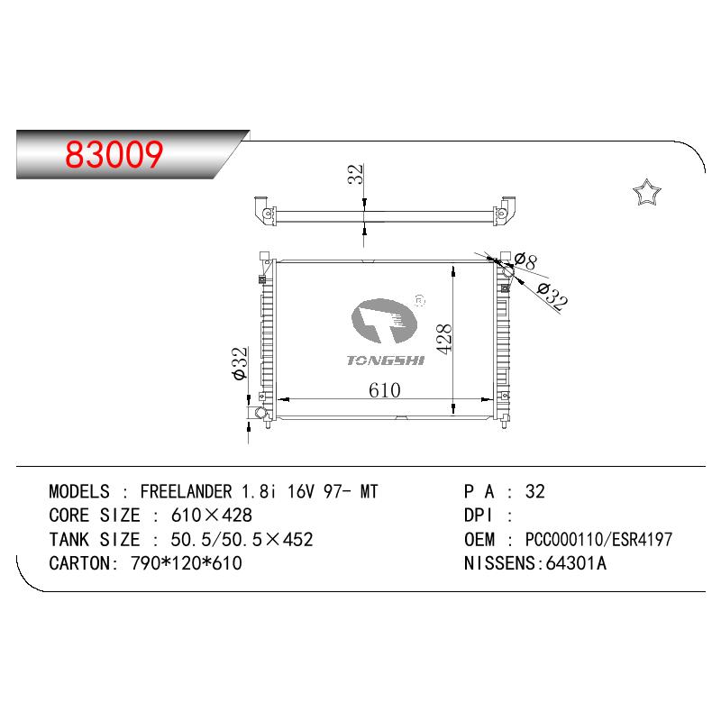 适用于路虎神行者 1.8I 16V散热器 OEM:ESR4197/PCC000110