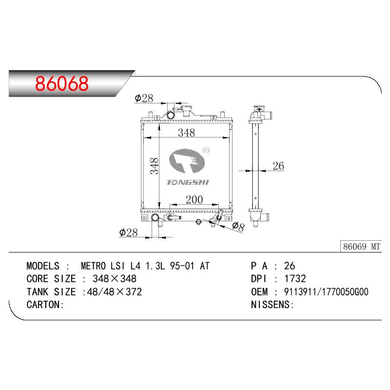 适用于SUZUKI METRO LSI L4 1.3L OEM:9113911/1770050G00