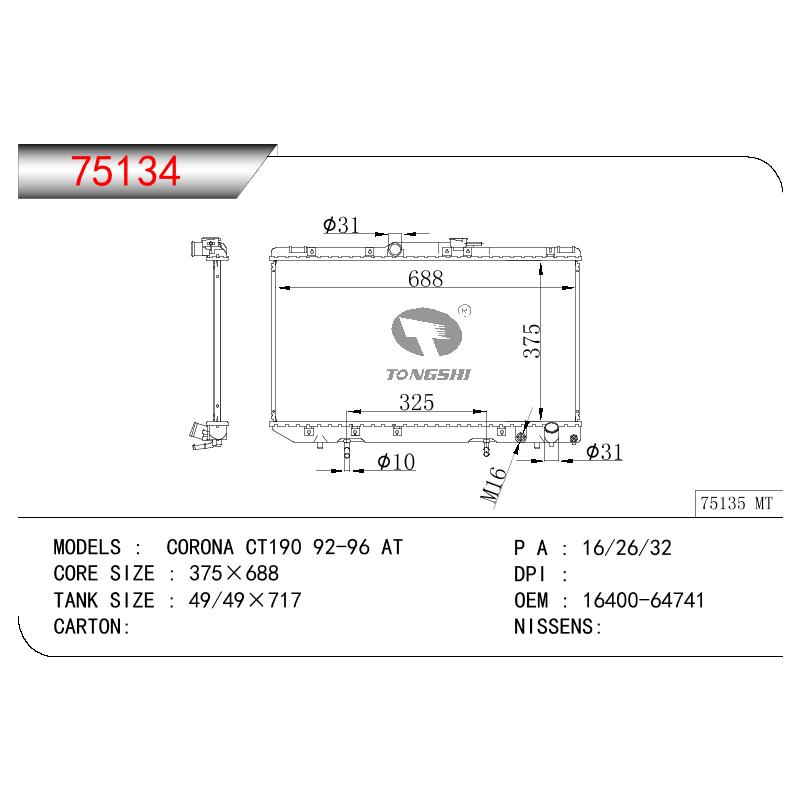 适用于TOYOTA CORONA CT190 OEM:16400-64741/1640064741