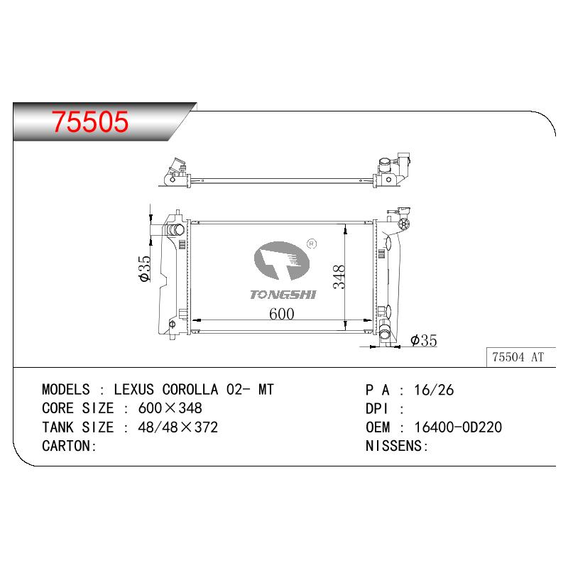 - 适用于TOYOTA LEXUS COROLLA OEM:16400-0D200/16400-0D210/164000D200/164000D210