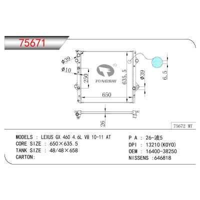 适用于TOYOTA LEXUS GX460 4.6L V8 OEM:16400-38250/1640038250
