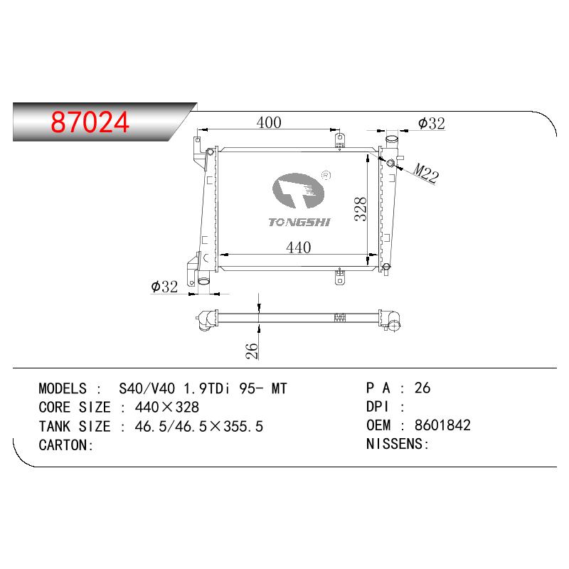 适用于VOLVO S40-V40 1.9TDI OEM:8601842