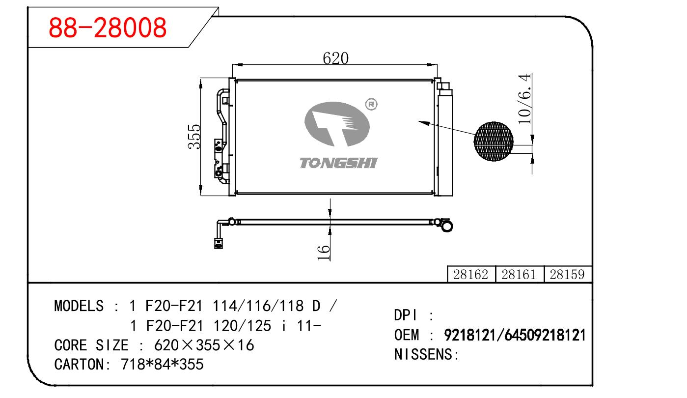 - 适用于宝马1 F20-F21 114/116/118 D /1 F20-F21 120/125 i 11-冷凝器 OEM:9218121/64509218121
