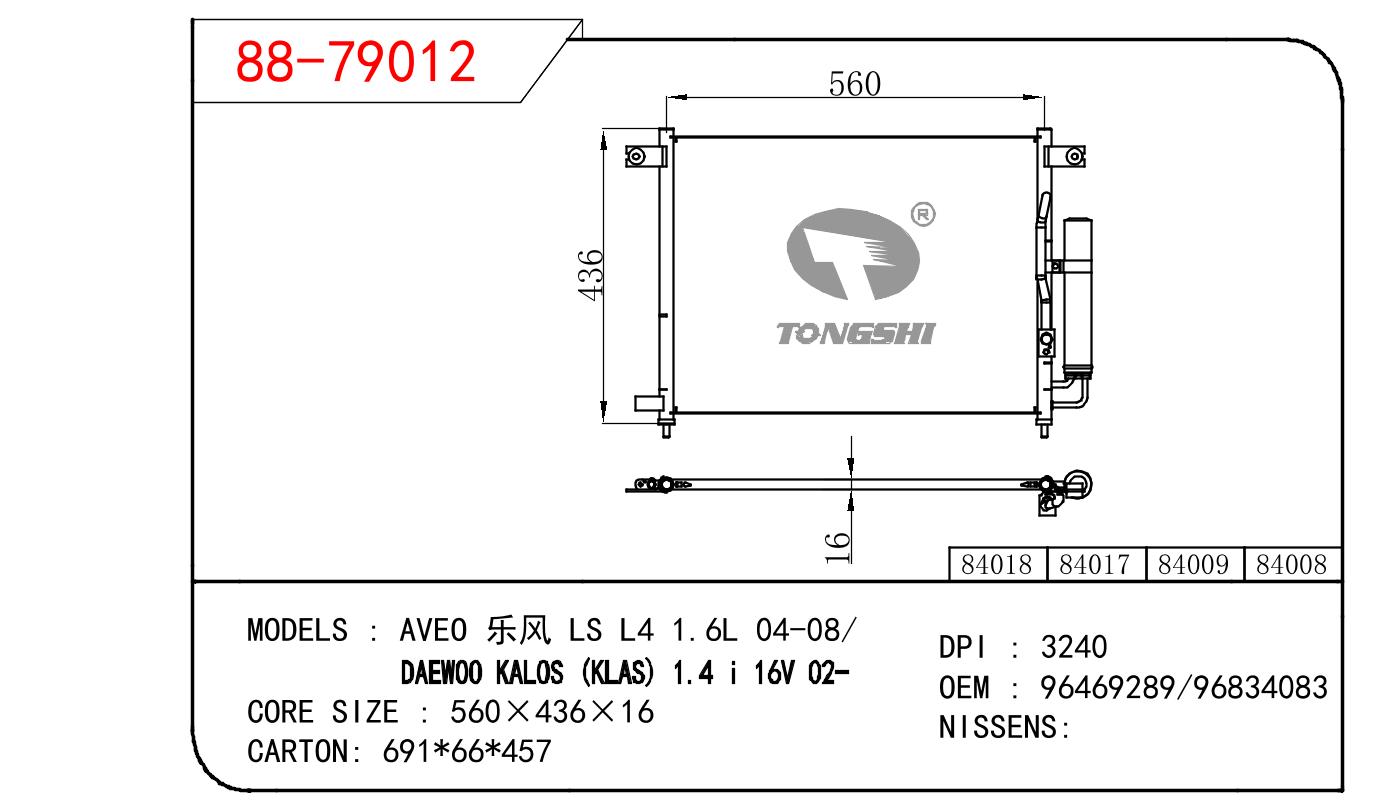 - 适用于爱唯欧乐风 LS L4 1.6L 04-08/DAEWOO KALOS (KLAS) 1.4I 16V 02-冷凝器 OEM : 96469289/96834083