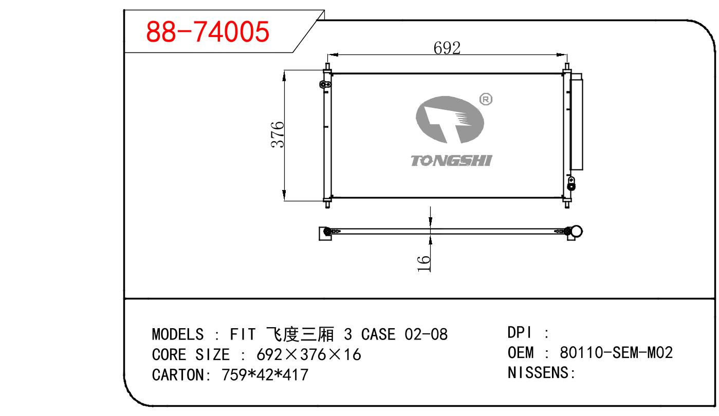 适用于本田飞度三厢 3 CASE 02-08冷凝器 OEM : 80110-SEM-M02