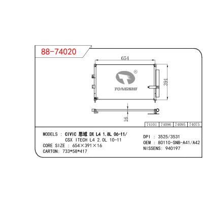 - 适用于本田思域 DX L4 1.8L 06-11/CSX ITECH L4 2.0L 10-11冷凝器 OEM : 80110-SNB-A41/A42