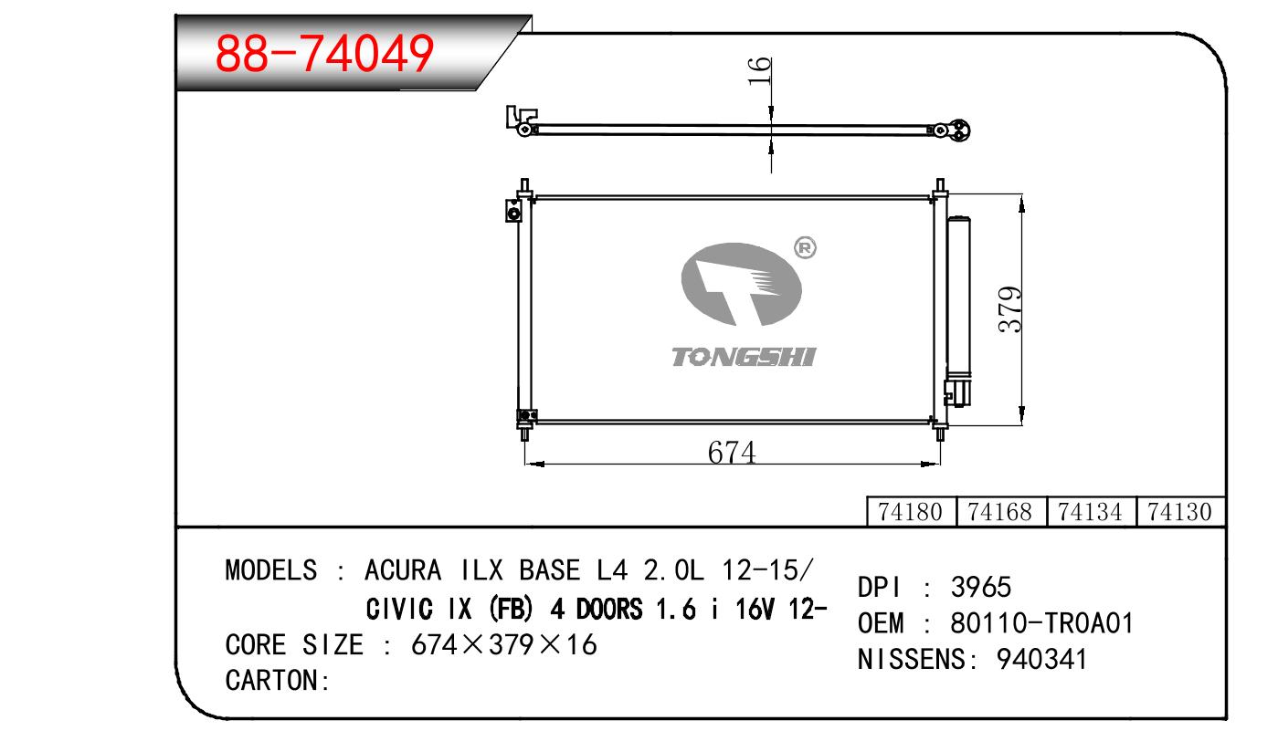 - 适用于HONDA ACURA ILX BASE L4 2.0L 12-15/CIVIC IX (FB) 4 D00RS 1.6 I 16V 12- OEM:80110-TROA01/80110TR0A01