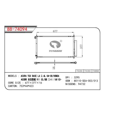 - 适用于本田ACURA TSX BASE L4 2.4L 04-08/雅阁 VII(CL/CM) 2.4I 16V 03- 冷凝器 OEM : 80110-SEA-003/013