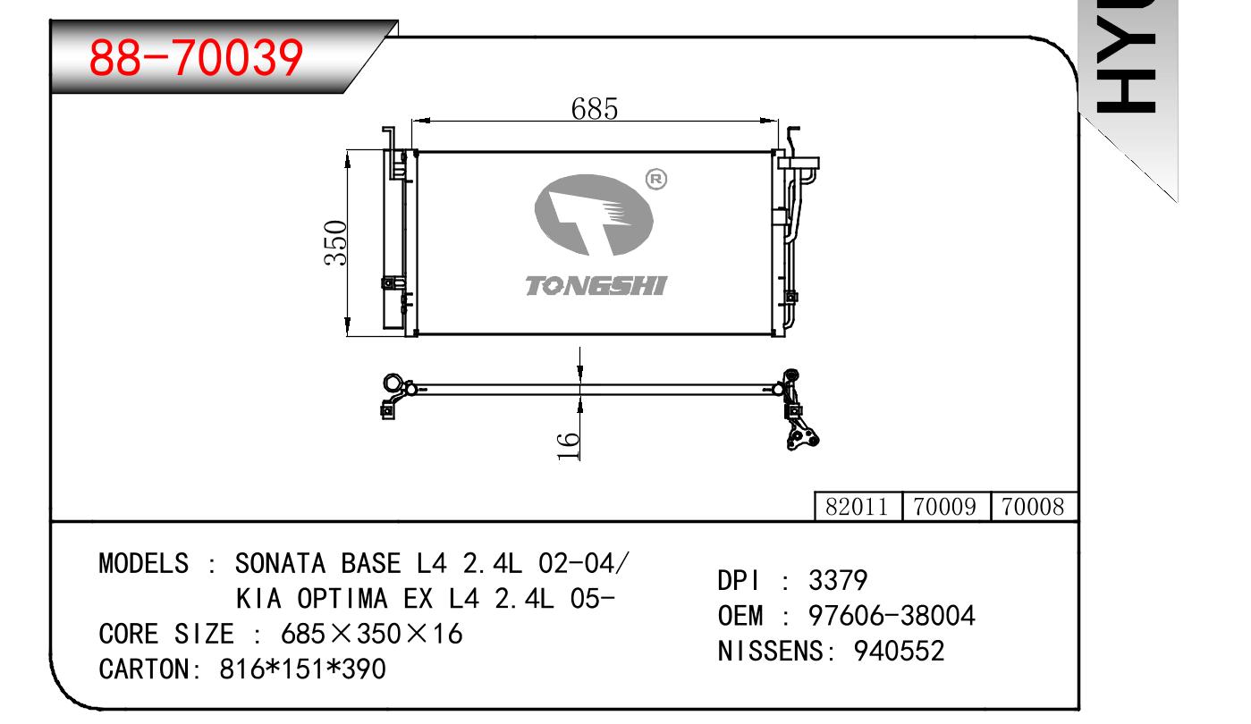 - 适用于HYUNDAI SONATA BASE L4 2.4L 02-04/KIA OPTIMA EX L4 2.4L 05- OEM:97606-38004/9760638004