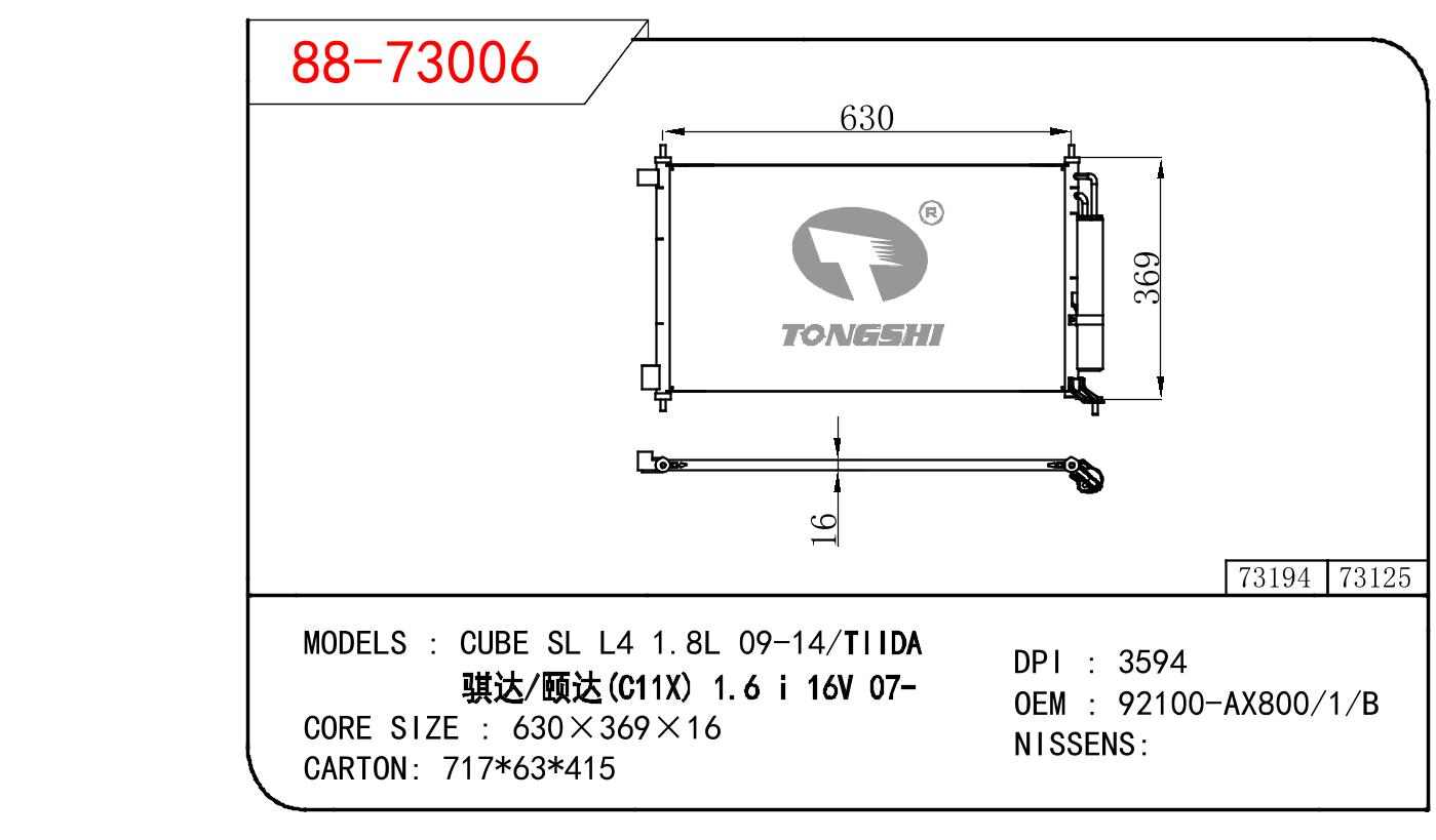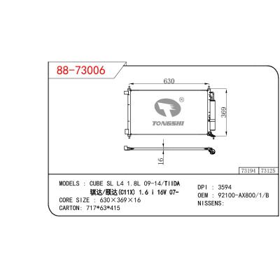 - 适用于日产尼桑OUBE SL L4 1.8L 09-14/骐达/颐达(C11X) 1.6 I 16V 07-冷凝器 OEM : 92100-AX800/1/B