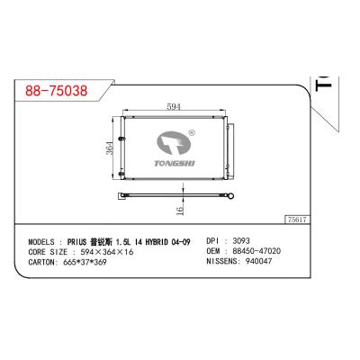 适用于丰田普锐斯 1.5L I4 HYBRID 04-09 冷凝器 OEM : 88450-47020