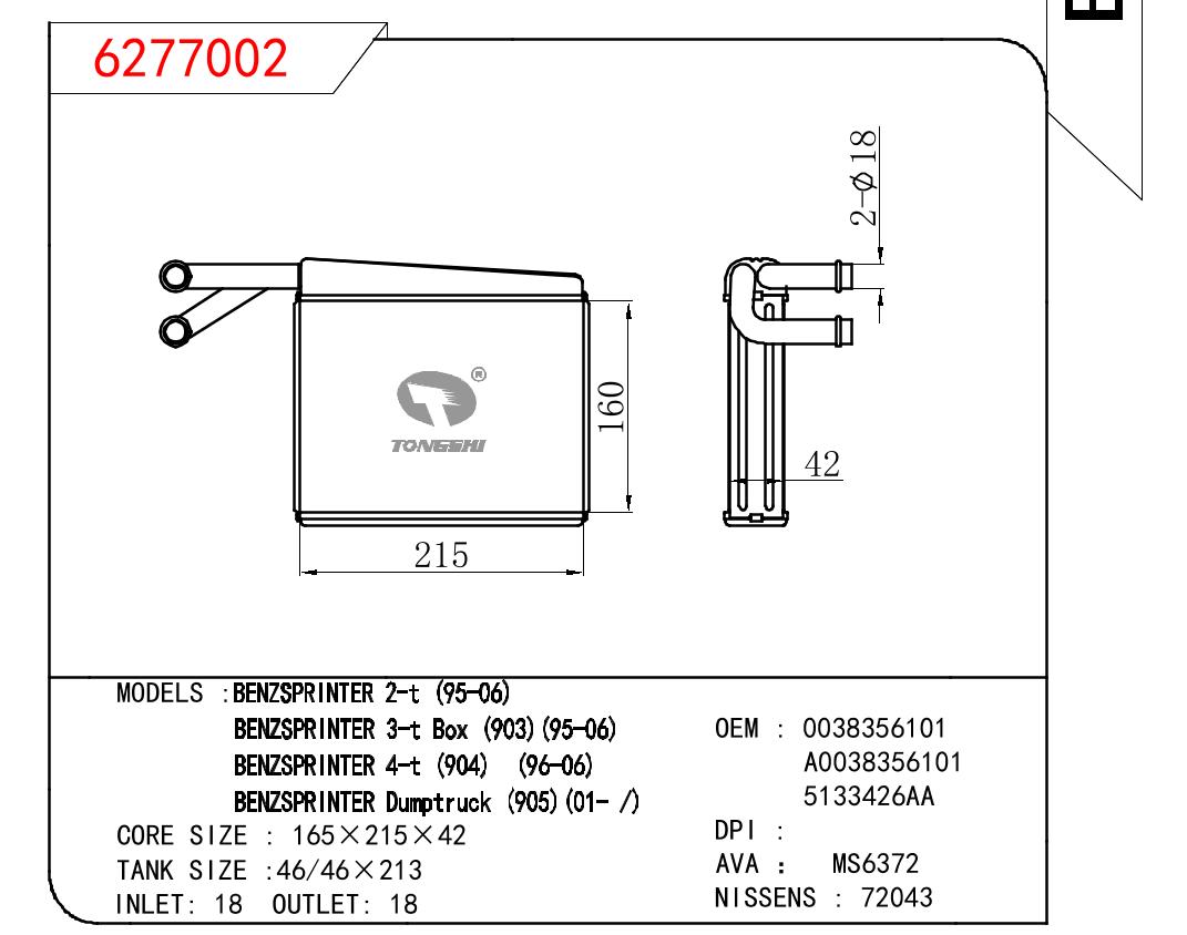 - 适用于奔驰凌特 2-T 95-06/凌特 3T BOX 903 95-06/凌特 4T 904 96-06/凌特 DUMPTRUCK 905 01-暖风