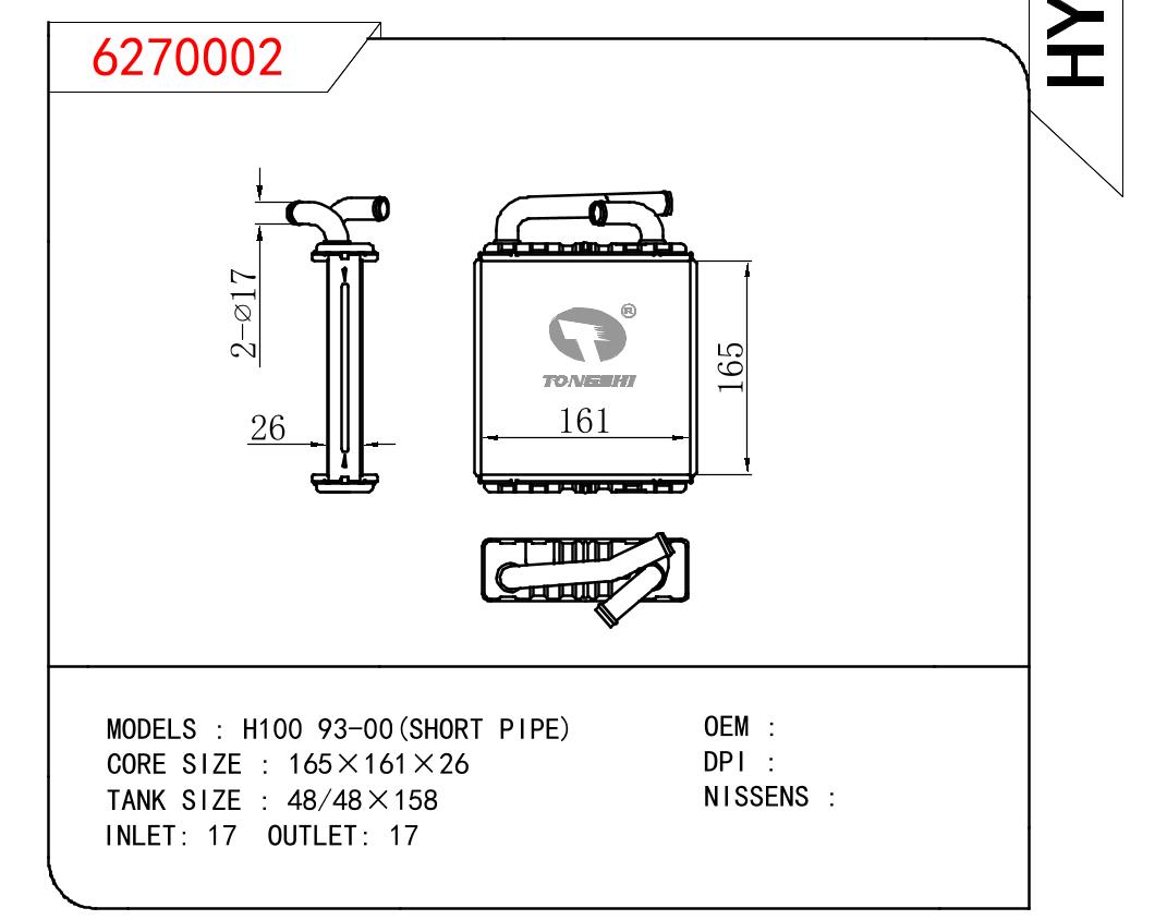 适用于HYUNDAI H100 93-00(SHORT PIPE)