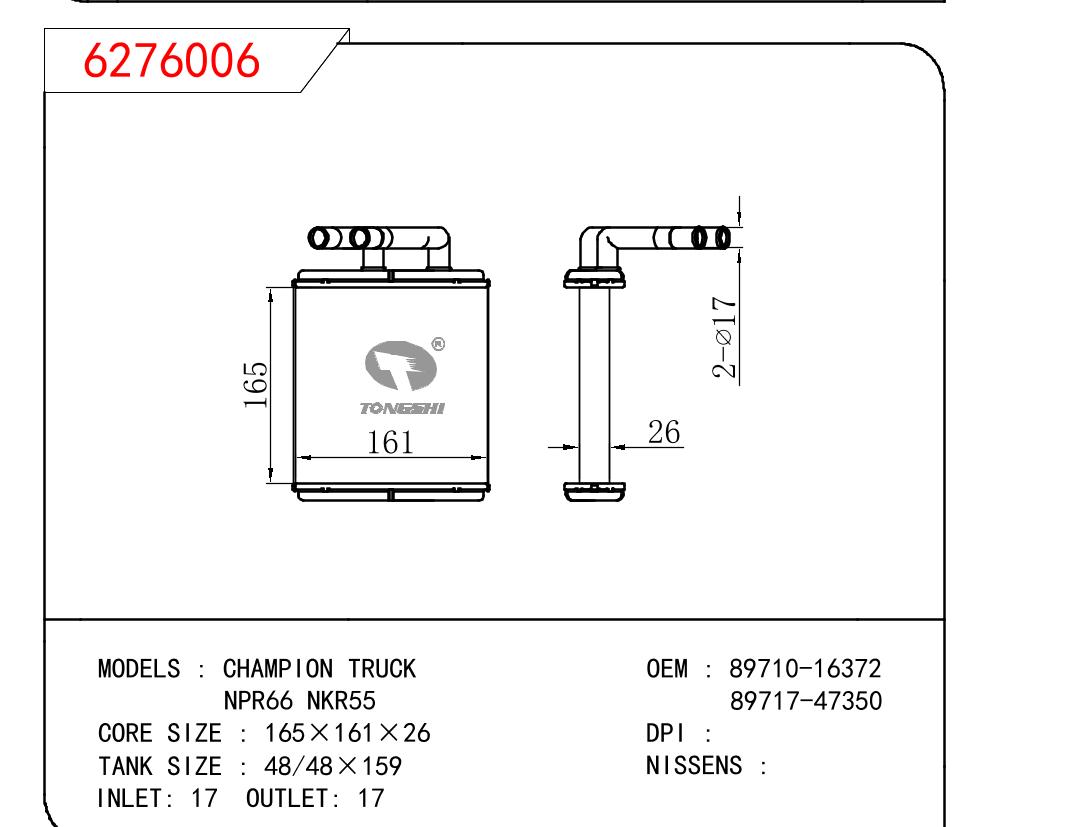 适用于ISUZU五十铃CHAMPION TRUCK NPR66 NKR55暖风 OEM : 89710-16372/89717-47350
