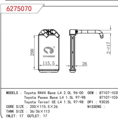 - 适用于丰田RAV4 Base L4 2.0L 96-00/Paseo Base L4 1.5L 97-98/Tercel CE L4 1.5L 97-98暖风 OEM : 87107-10350