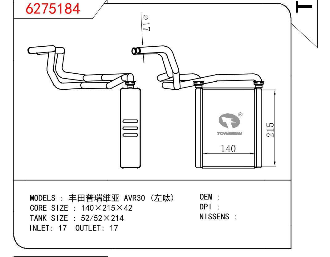 适用于TOYOTA 丰田普瑞维亚 AVR30 (左呔)