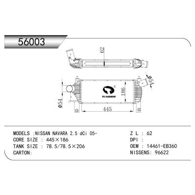 适用于日产尼桑 PATHFINDER (R51) 中冷器 OEM: 14461-EB360