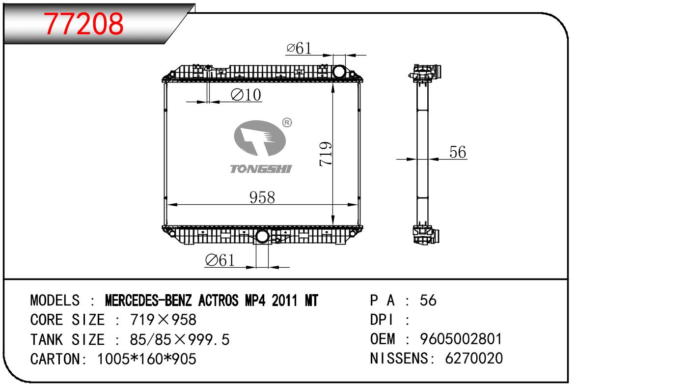 适用于奔驰MERCEDES-BENZ ACTROS MP4散热器 OEM:9605002801