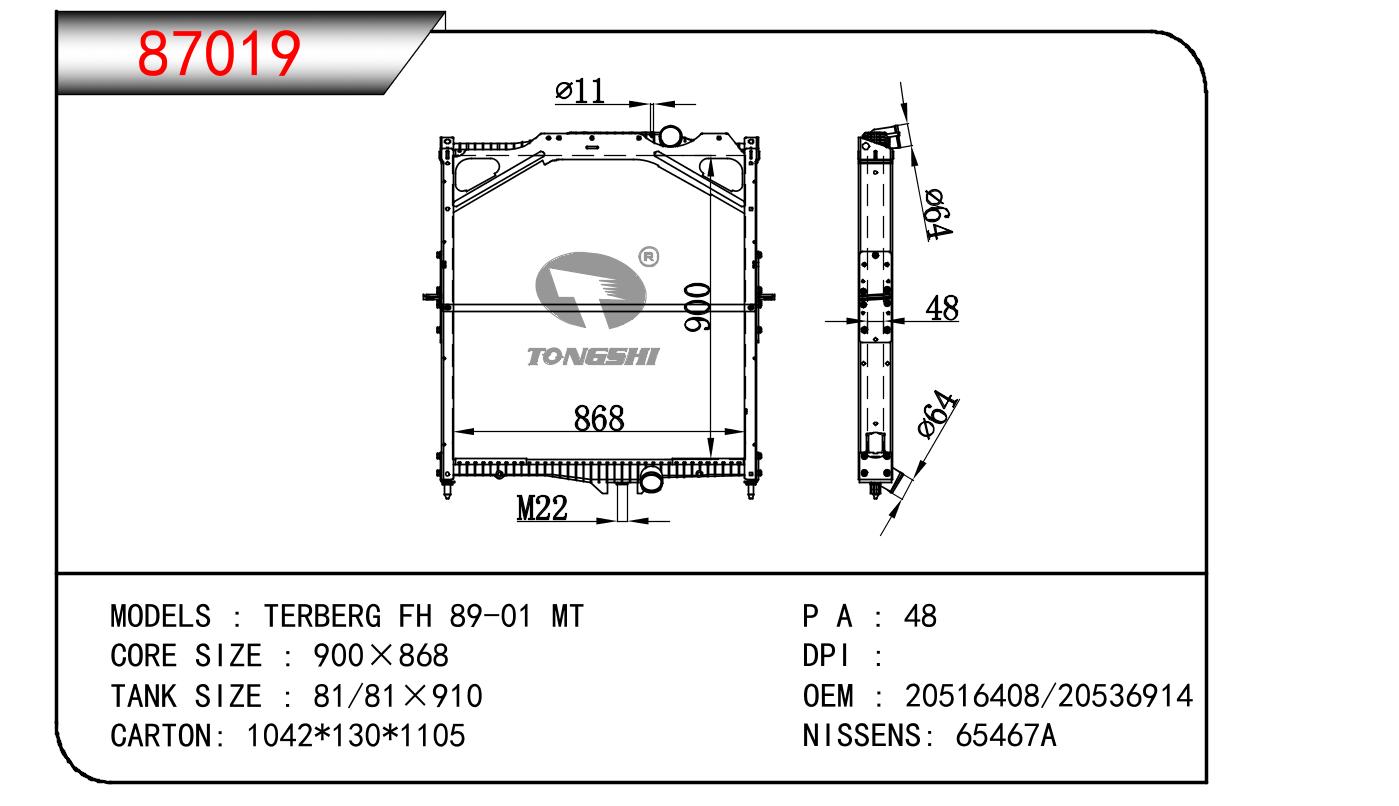适用于沃尔沃TERBERG FH 89-01 MT散热器 OEM : 20516408/20536914