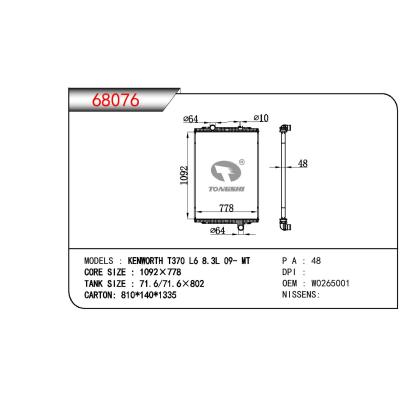 适用于KENWORTH T370 L6 8.3L 09- MT重卡散热器 OEM : W0265001