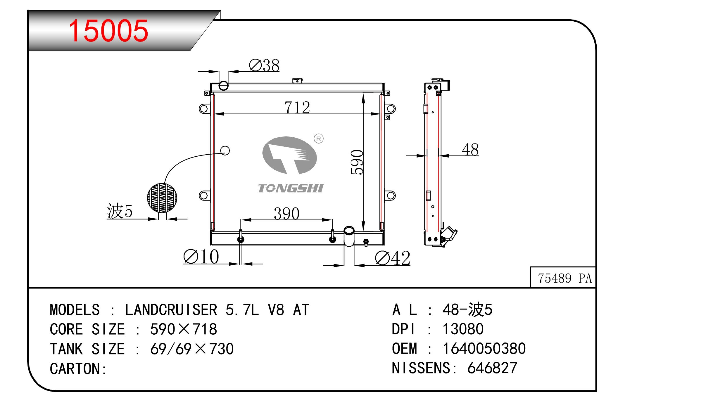 适用于丰田兰德酷路泽5.7L V8 AT 散热器 OEM:1640050380