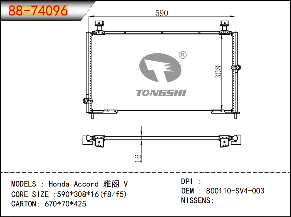 适用于本田雅阁V冷凝器 OEM : 800110-SV4-003