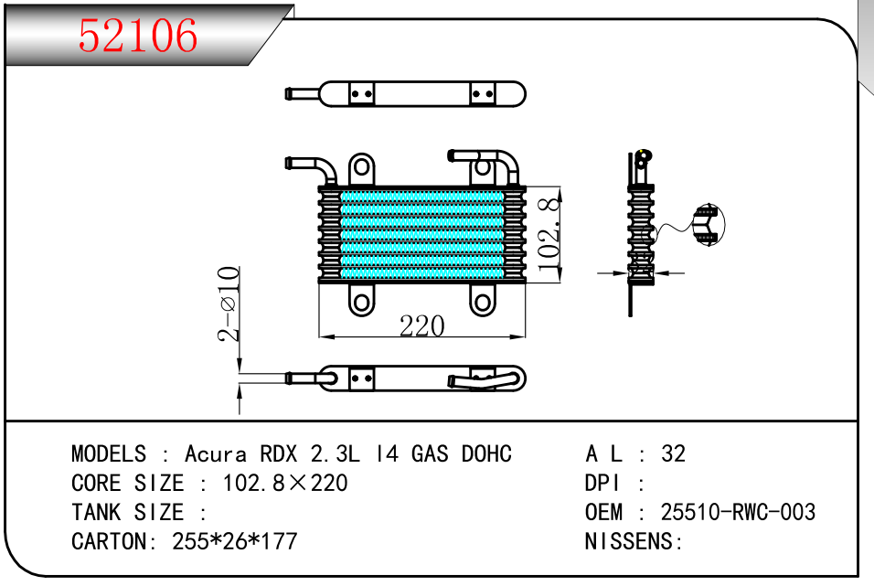 适用于Acura RDX 2.3L l4 GAS DOHC油散 OEM:25510-RWC-003