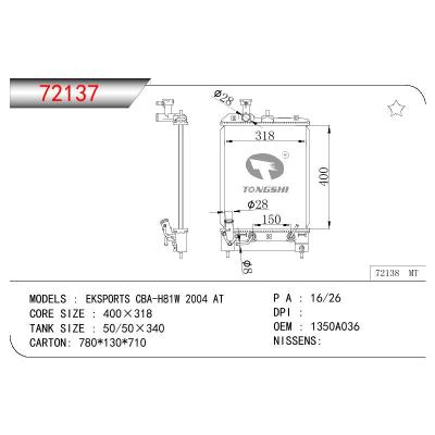 适用于三菱 EKSPORTS BCA-H81W 散热器 OEM:1350A036