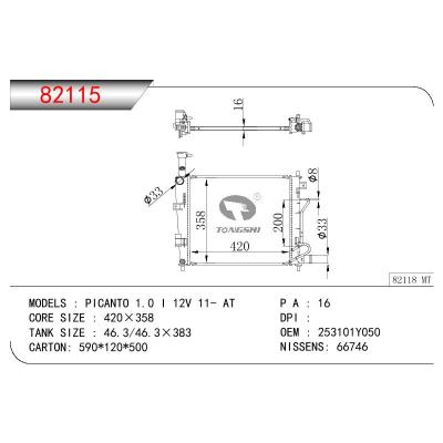 适用于起亚秀尔 L4 2.0L散热器 OEM:25310-B2-050/25310B2050