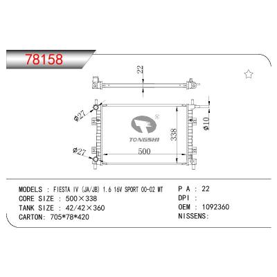 适用于FORD FIESTA (JA/JB) 1.6 16V SPORT OEM:1092360/XS6H8005SB