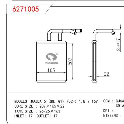 适用于MAZDA MAZDA 6 (GG, GY) (02-) 1.8 i 16V OEM:GJ6A-61-A10/GR1A-61-A10